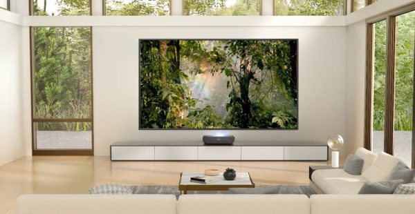 Hisense introduceert de 100-inch TriChroma LaserTV met ALR Screen: de 100L9G-B12. Deze projector maakt gebruik van een driekleurenlaserbron met 4K beeldkwaliteit. Dit gaat gepaard met een Dolby Atmos audiosysteem, dat de kijker omringt met geluid