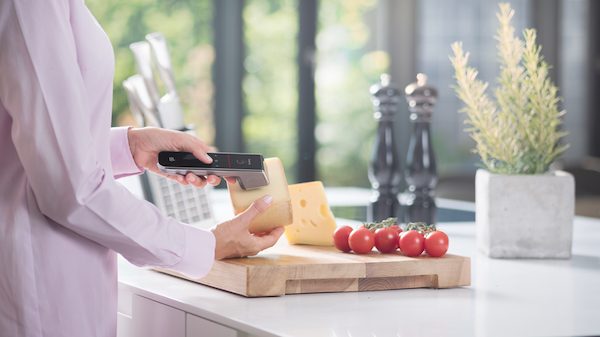 De X-Spect handscanner laat niet alleen zien of je eieren, groenten en fruit nog vers of rijp zijn, maar helpt ook een handje bij het volgen van een dieet. De scanner herkent namelijk ook suiker, vet en proteïne. Zo zie je snel of die heerlijke perzik wel in je dieet past.