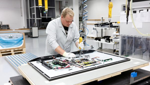 Dit gebeurt enerzijds met de geautomatiseerde productielijn. Maar de aandacht gaat vooral uit naar de speciaal hiervoor opgeleide mensen die hier de premium modellen met oled-technologie maken en uitvoerig testen vóór levering.
