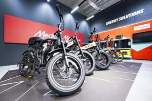 De winkel in Antwerpen dompelt consumenten volledig onder in de wereld van urban mobility. Het aanbod van producten is hoogkwalitatief, maar toegankelijk met e-bikes, fatbikes en e-scooters in verschillende prijsklassen van merken als Mate, Knaap en Ducati en elektrische scooters van Brekr. Ook de e-steps, die de laatste jaren steeds meer de Belgische straten veroveren, zijn een vaste waarde in de nieuwe winkel met merken zoals Segway, Xiaomi, Niu en Pure Electrics.