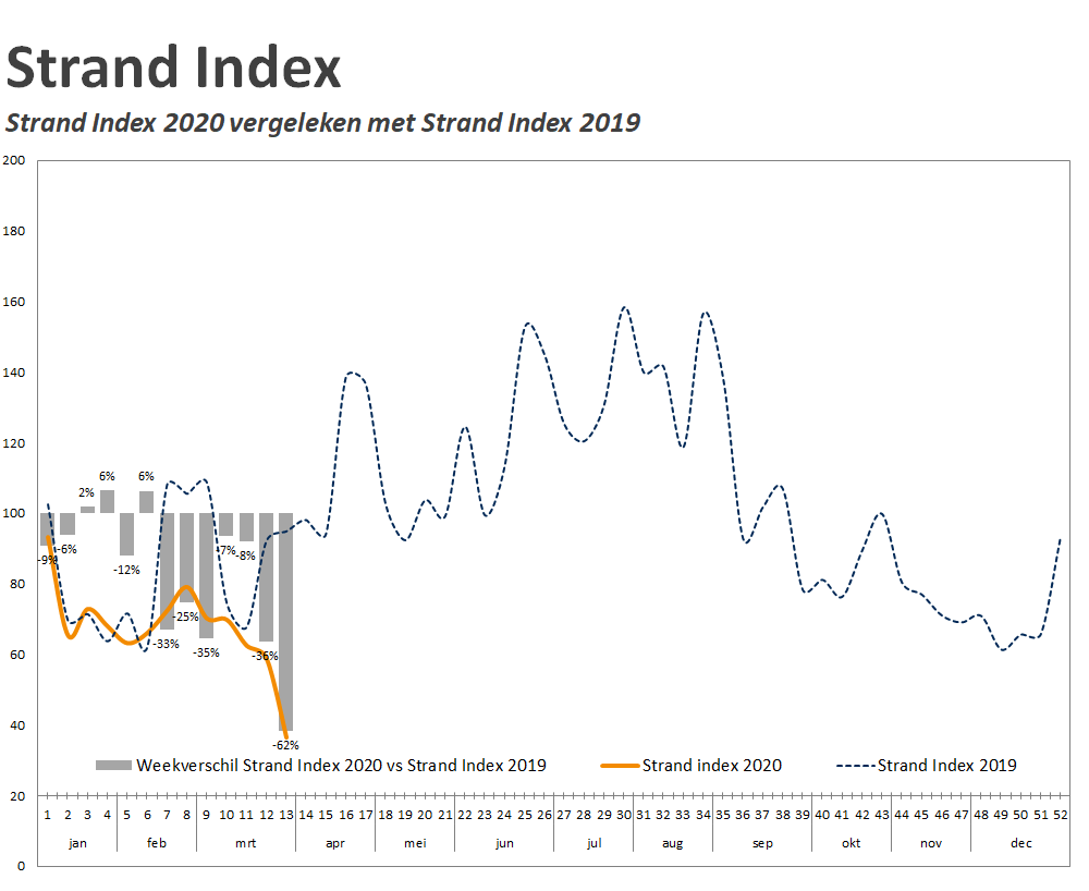 Wat de stranden betreft was het ondanks het mooie weer 38% rustiger dan het weekend ervoor en 62% minder druk dan vorig jaar. Op veel plaatsen was parkeren onmogelijk gemaakt waardoor het bereiken van het strand vaak alleen met de fiets of het openbaar vervoer mogelijk was.